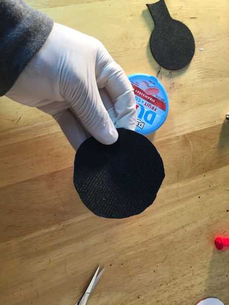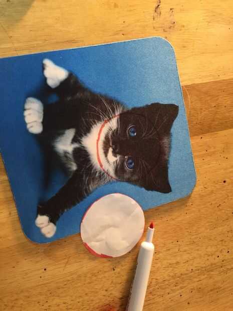 Lay down the mouse pad circle on top of the container, make sure it centered perfectly.