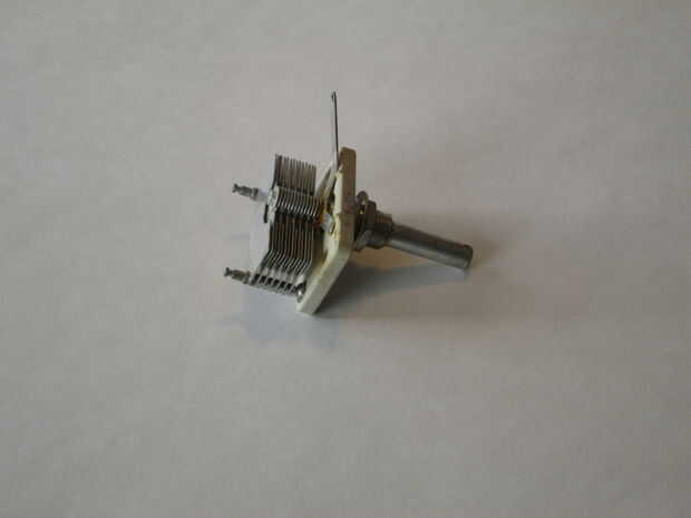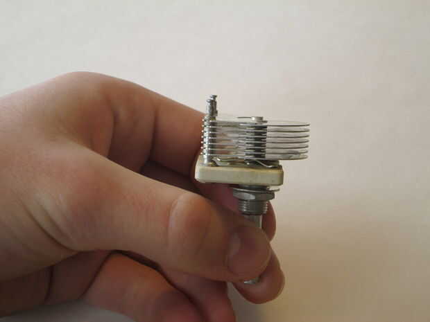 Su última opción es hacer lo que hacen en la industria: apilar un montón de ellos juntos. Las primeras imágenes de algunos son un excelente ejemplo de esto. Es un condensador variable que puede ser utilizado en una radio (que no toda la línea para arriba perfectamente ya que es un condensador variable, girando la perilla, la cantidad ajustar la superposición de placas, cambio de la capacitancia.) ¿Cómo se hace esto? Como se puede ver, hay un gran número una placas apilan sobre - pero no tocar-uno al otro. En este escenario, aire actúa como la constante dieléctrica, y genera una capacidad similar a la construí. Hay realmente un gran número de condensadores que allí forman uno grande, en la que la placa superior del condensador se convierte en la placa inferior de otro.