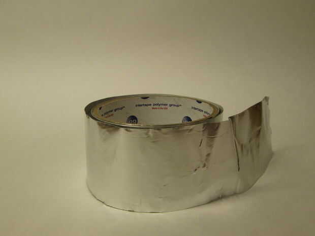 Si usted está buscando cinta de aluminio, trate de un almacén del hardware. Se utiliza para reparar conductos en los sistemas de calefacción de las viviendas.