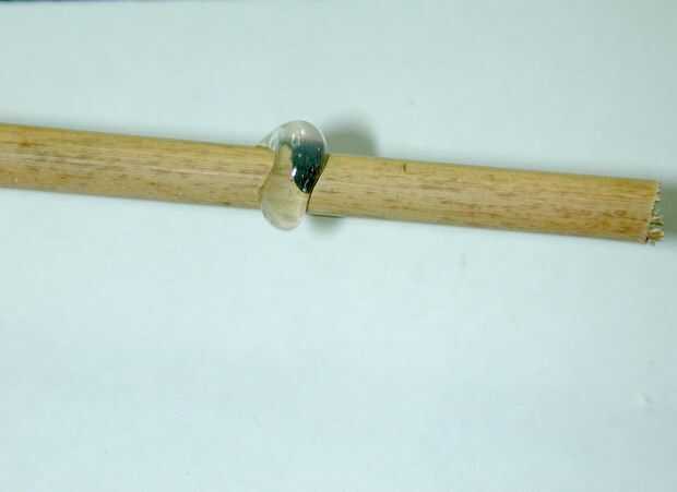 A una distancia de 3 cm de cada extremo de la vara de la flor, agregar poco de pegamento para formar un anillo alrededor de la palanca. Deje que el pegamento secando.
