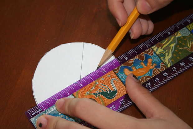 Usando una regla, hacer un triángulo en el círculo. Conectar el centro del círculo con los bordes. Creo que PacMan.