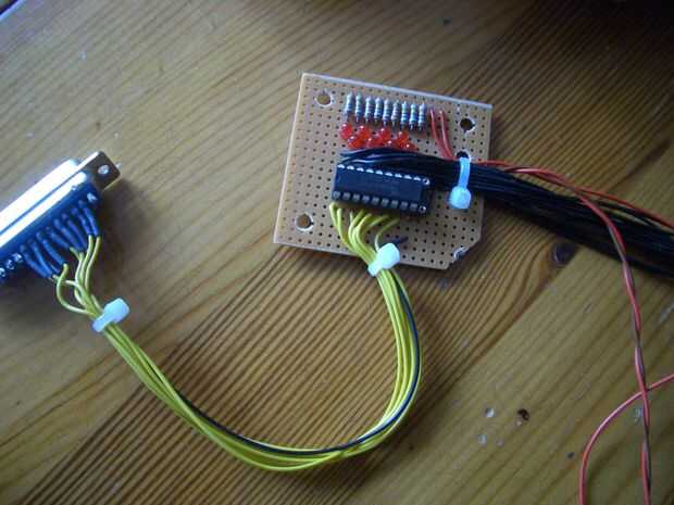 El LED´s en mi circuito a continuación son para fines de control. Los cables negros conectan el cerebro al circuito.
