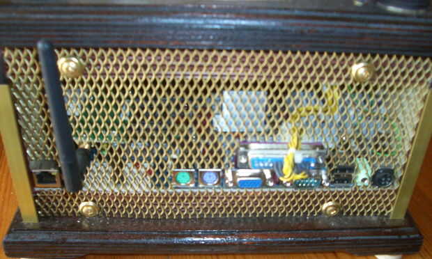 Panel trasero de TH se redujo de un enrejado de aluminio revestido en latón.