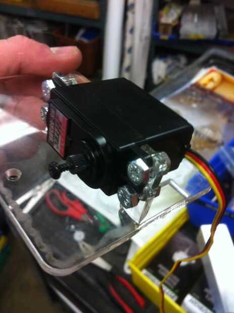 Primero Monte el brazo del servo al soporte entonces encienda el servo y cero hacia fuera. Después de él está en el punto cero Coloque el brazo de soporte/servo el servo. Esto asegura que está en la posición correcta cuando el servo se activa evitando que forzando posiblemente el soporte en el marco de soporte de algunas de las partes.