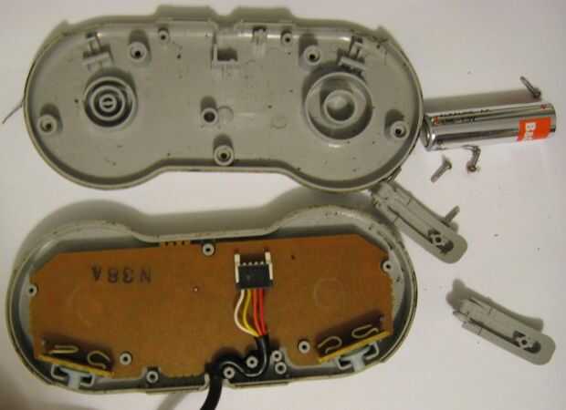 Retire las piezas de la carcasa del remarcado en verde en la imagen con el frente del controlador abierto.