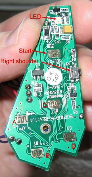 La sección del tablero con el D-pad se puede quitar ya que es sólo una Junta de contacto que utiliza los cables para conectar a las prensas del botón. El tablero con las fichas en él es el controlador adecuado.