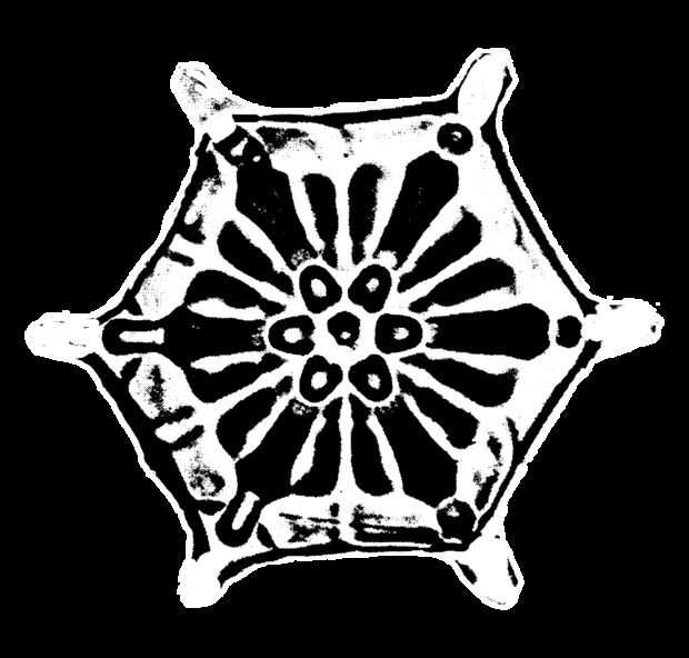 Cada copo de nieve tiene dos partes: una parte etchable blanca y negra y una máscara negra. Recorren la máscara de "seguimiento rápido" (ver mi tutorial: para obtener un esquema y hacer esa rayita. Alinee entonces cuidadosamente con la parte blanco y negro.