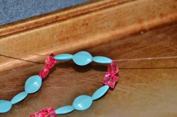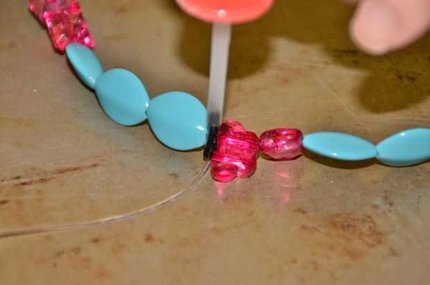 cable a través de otra vez. Tire del cordón y los granos se ven juntos y darle dos colas. Ate una cola junto al talón usando un nudo (como empezar a atar sus cordones del zapato). Tire de la cola y esto debe formar un enganche media ajustado hasta el grano de la cola va por el cable principal. Y entre la cola y el cordón principal. Apriete el nudo hasta el grano nuevo. Unte una pequeña cantidad de pegamento en el nudo. Esto evitará que el nudo se deslice una vez que el pegamento se establece. Ahora, tire suavemente de la cola con el nudo. Ahora el nudo otra vez y pegar. Y corte las colas después de establece el pegamento.