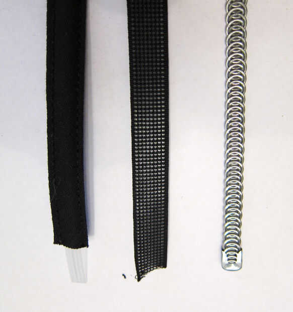Que desea usar de acero (no foto) y espiral de los huesos (derecha). Huesos de acero pueden ser utilizados en el lado o detrás de las costuras, donde no hay ninguna curva. Huesos de espiral se utilizan para las costuras curvas, como se modele para adaptarse a las costuras de un corsé donde se hebilla un hueso recto. En este instructable, utilicé espiral para todas las costuras porque eso es lo que tenía en mano, pero en teoría la mayoría de mis costuras podría haber utilizado huesos de acero, ya que sólo las costuras delanteras en el busto tienen mucha curva a ellos.