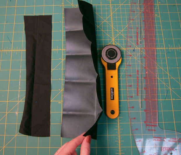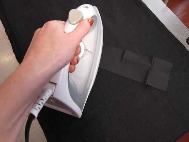 Como último paso, cortar dos piezas de entretela por la parte trasera (donde irá el cordón) y hierro en el. Esto es para proporcionar estabilidad adicional para los ojales. Realmente utilicé plancha en tela en lugar de interfaz ya que es lo que tenía alrededor de la reparación, y funcionó muy bien así.