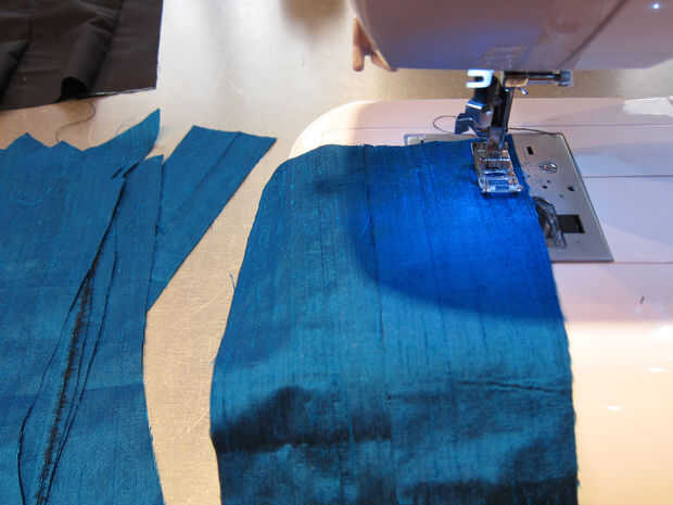 Coser juntos los paneles juntos para la tela exterior.  Hacer lo mismo con la tela del forro.