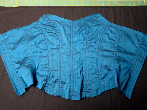 Para el revestimiento de la parte inferior, hacer lo mismo, asegurándose de que la parte inferior del corsé se encuentra tan plano como sea posible antes de cortar.