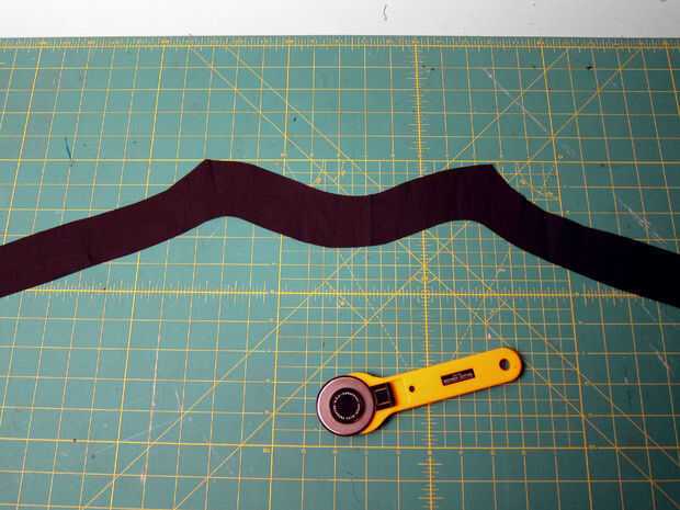 Para el revestimiento superior, colocar un pedazo de la tela de la guarnición sobre la almohadilla de corte tan amplia como su corsé estirado. Establecer el corsé con la parte superior tan plano como sea posible contra la tela del forro. Corte alrededor del borde del corsé. Quitar el corsé y hacer una tira que se extiende sobre un 1.5" abajo de la línea a cortar.