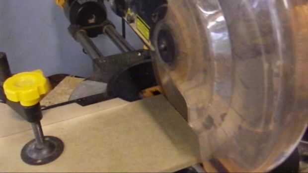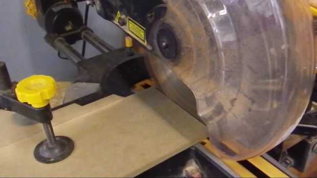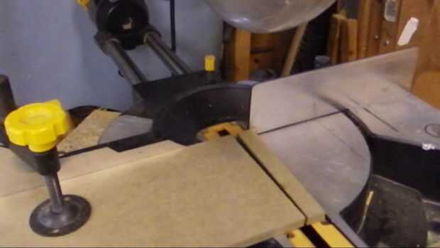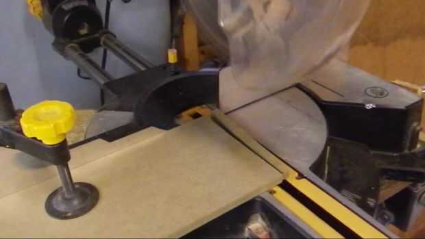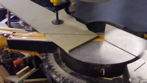 Ajustar la ingletadora a 45 * a continuación, corte un triángulo de ángulo recto Asegúrese de que al menos un borde del tablero mdf es un filo de fábrica