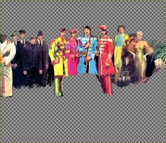 Para este proyecto, utiliza el arte de la carátula de Sgt. Pepper (pero modificado como parte de una broma gráfica para otros lugares) en GIMP y había creado 6 copias en sus propias capas.