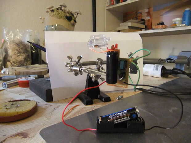 El LED rojo indica cuando el condensador está cargado y listo para ir.