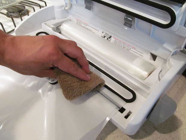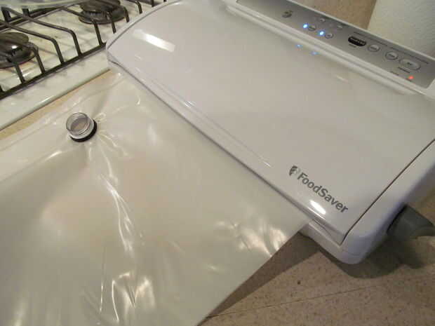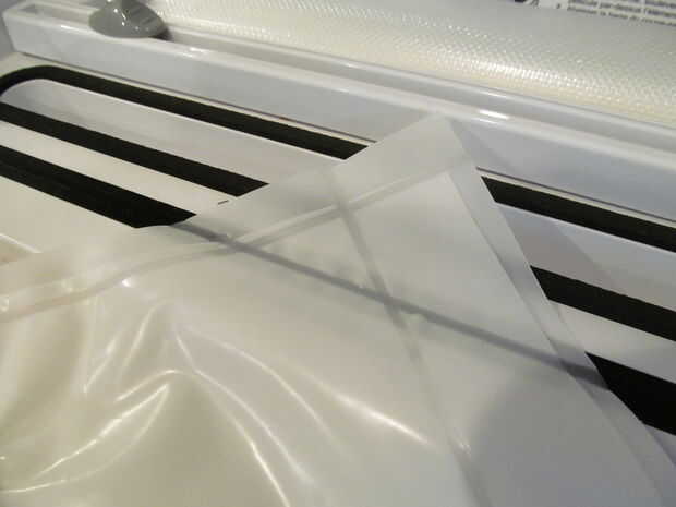 Alinee las hojas en la parte superior del elemento de soldadura, cerrar la tapa y presione el sello. Ahora debe tener una línea con fusible limpia. Si tienes algún problema en conseguir cualquier parte para fusible puede voltear la bolsa y sellar otra vez. Use un paño húmedo para enfriar la costura antes tirando del plástico.