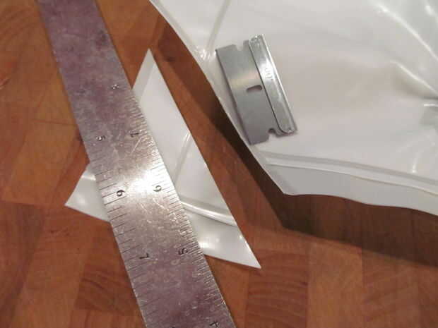 Para terminar uso una regla y maquinilla de afeitar. Corte el exceso en los bordes de las costuras. También recortar el plástico sobrante de la salida.