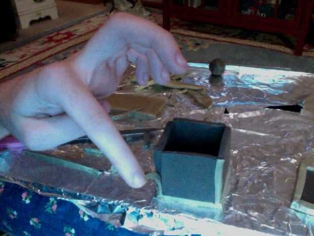 Las restantes tiras de oro que tienes se convertirá en las esquinas de la caja. Cortar como tiras largas de 1,5 pulgadas y luego colocarlos junto a las esquinas, luego corte la parte sobrante que es más larga que la parte superior de su caja.