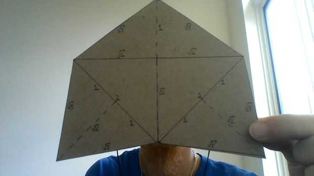 La segunda foto es una foto de la plantilla que he usado. El tercer cuadro incluye las longitudes involucradas. De hecho es posible construir esta figura únicamente con 1 y sqrt(2), pero con la ayuda de la marca sqrt(3) con asegurándose de que usted ha dibujado correctamente. Doce trazado más piezas utilizando esta plantilla que necesita doce para hacer el cuboflexahedron entero.