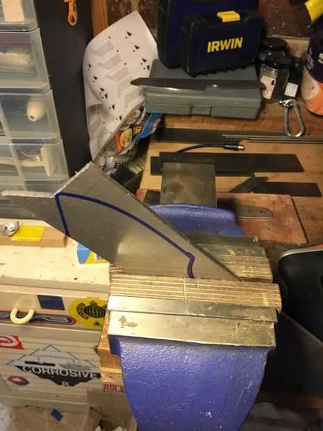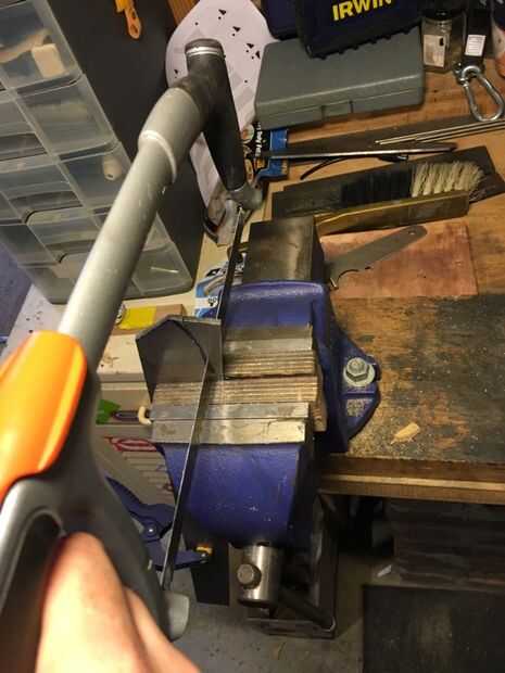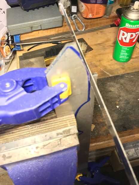 Usted podría notar que aunque tengo el acero que se sujeta en el tornillo de banco (mediante unas garras blandas de madera magnéticos hice) tengo algunas pinzas en ella - encontré que poniendo las pinzas más pequeñas en lugares estratégicos hizo mucho más tranquilo cortar. Particularmente cuando hay un poco largo y fino que se corta, chillidos bastante fuerte. Bloqueo reduce considerablemente el ruido.