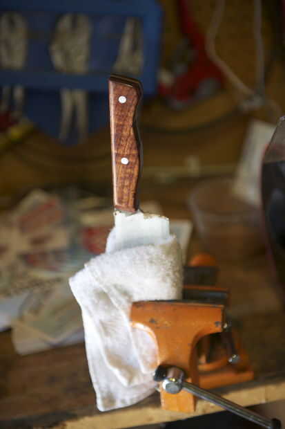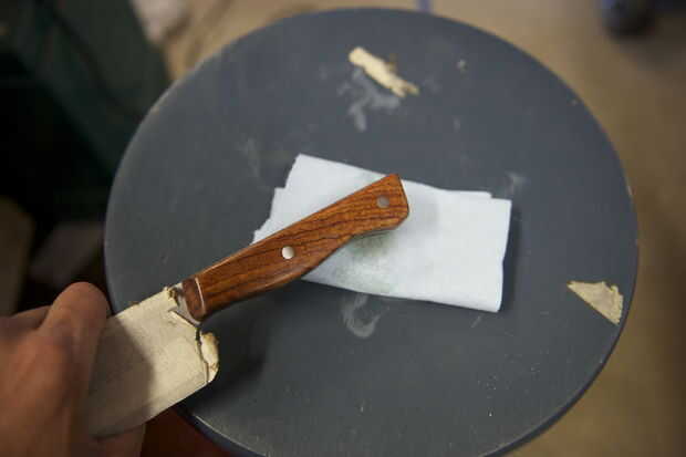 Antes de sellar o coloración, asegúrese de limpiar la pieza de trabajo con un paño de tac o microfibra para sacar todo el serrín. No quiero sellar serrín en su mango hermoso! Limpiar con trapo tac entre las capas demasiado!