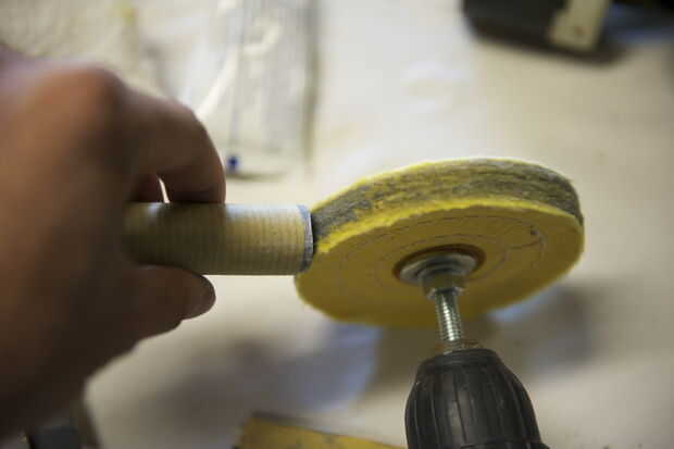 Pulido utiliza básicamente el mismo concepto como lijado, pero en lugar de tomar material con pequeños trozos de arena, pulimento saca material con partículas microscópicas. Hay diferentes grados de pulimento, al igual que hay diferentes granos de lija. Utilicé tres grados de pulidos, comenzando con el "más gruesas" y trabajo hasta los "mejores". El polaco viene en estos duros palillos de... polaco y cuando pulsas uno contra una hilatura pulidora la rueda se funde y cubre la rueda con la sustancia pulidora. Las ruedas de pulir usé donde hacen poco 3 y 4 ruedas de algodón. Necesita considerar qué tipos de ruedas utiliza, porque más finas ceras funcionan mejor con ruedas de pulir más suave y más gruesos esmaltes funcionan mejor con ruedas más firmes. La información que figura todo esto debe ser en el paquete del palo de polaco y a veces en el paquete de la rueda pulidora. Sólo asegúrate de que tienes alguna forma para contar los palillos polaco y Polaco ruedas aparte, porque es una buena idea utilizar sólo un tipo de pulimento en una rueda.