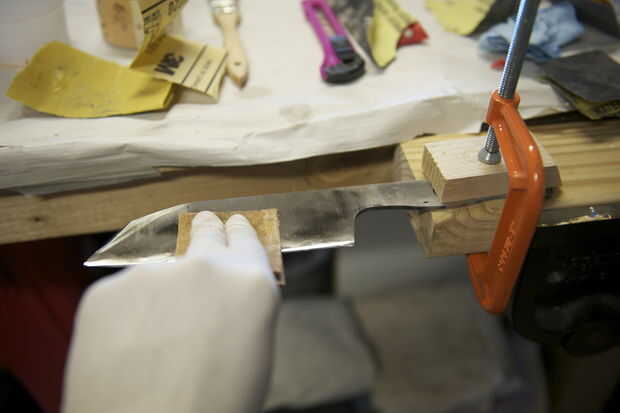 Una vez que sientes que haya lijado (causar su realmente hasta usted cómo brillante desea su cuchillo), puede llamar un día y pasar al siguiente paso, o se puede pulir la hoja.