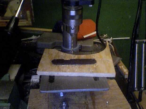 Comienza por cortar la madera del mismo modo que el metal mediante el uso de guía de papel de thF. Siga esto perforando los agujeros y luego utilice una broca de fresadora para cortar agujeros cuadrados en la madera. para las tuercas de metal Asegúrese de que ellos cant turno., acabado este paso usando una escofina para redondear los bordes.