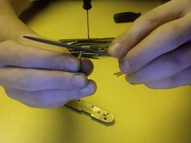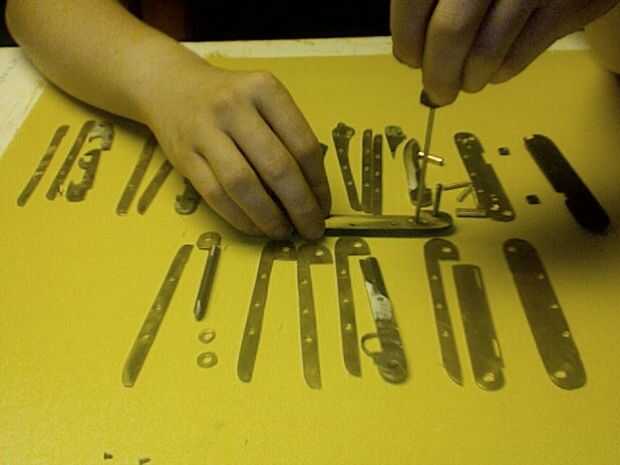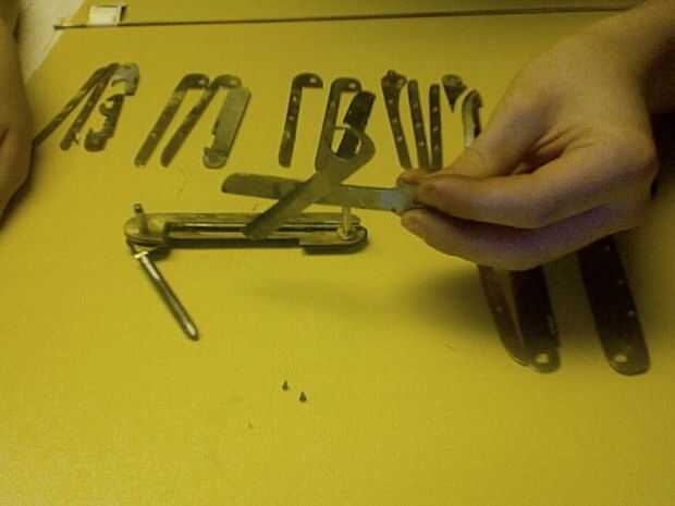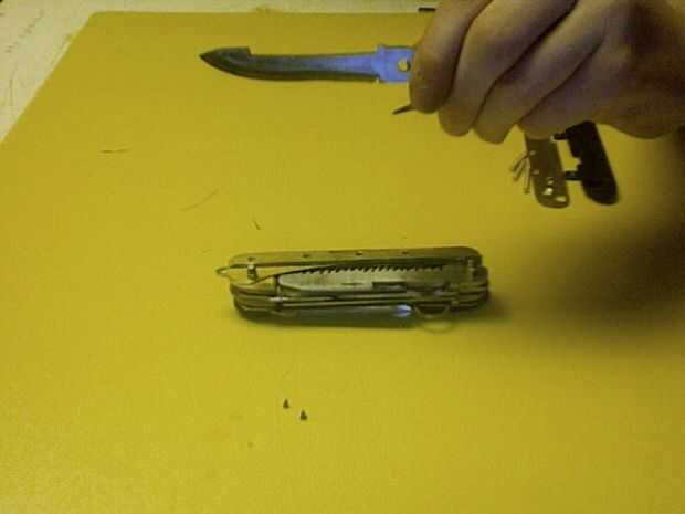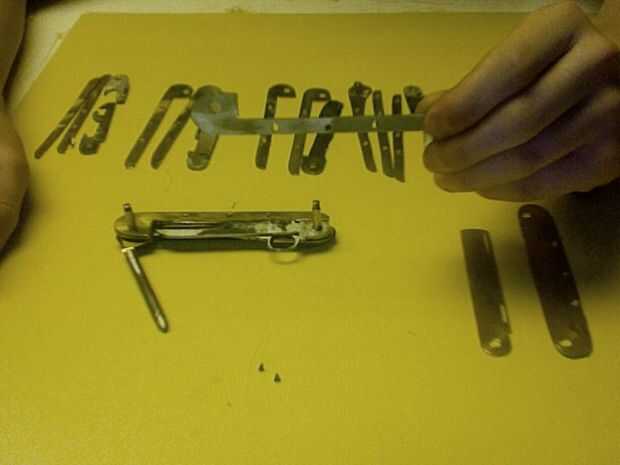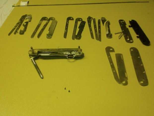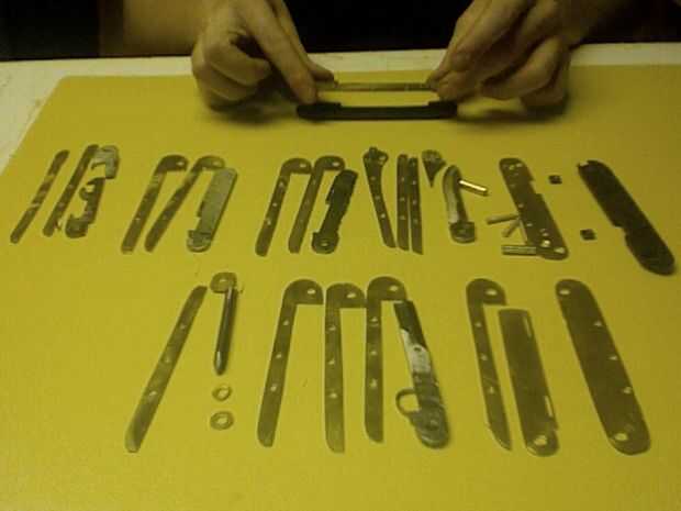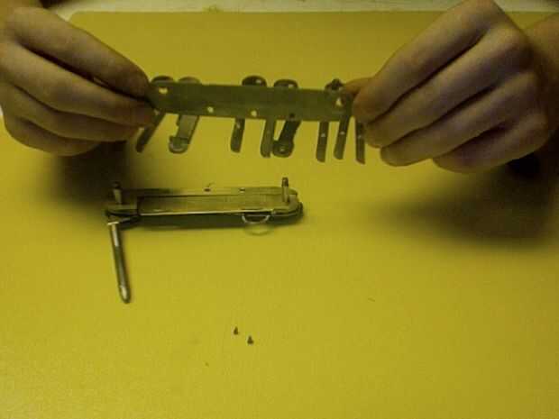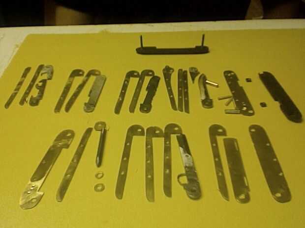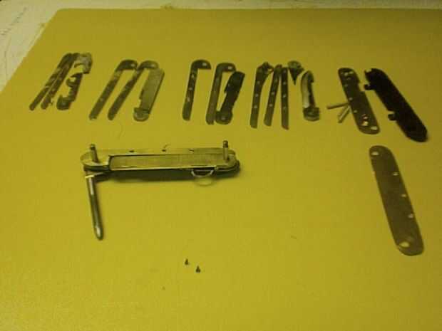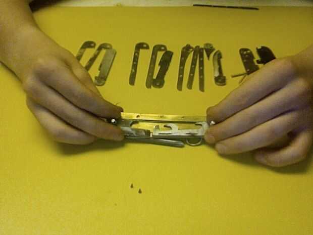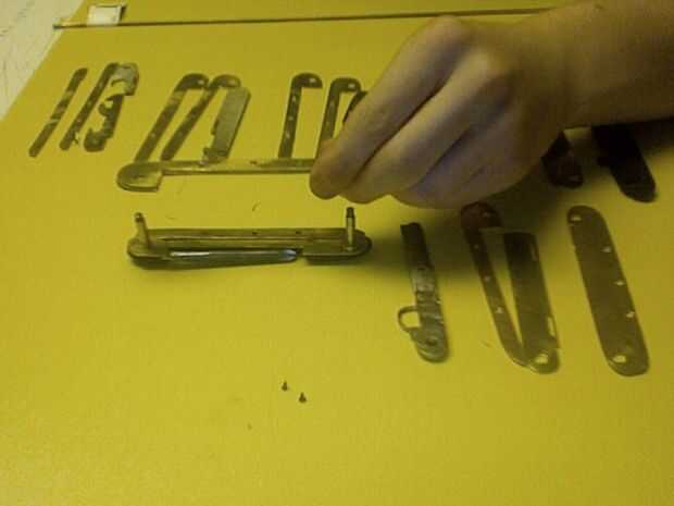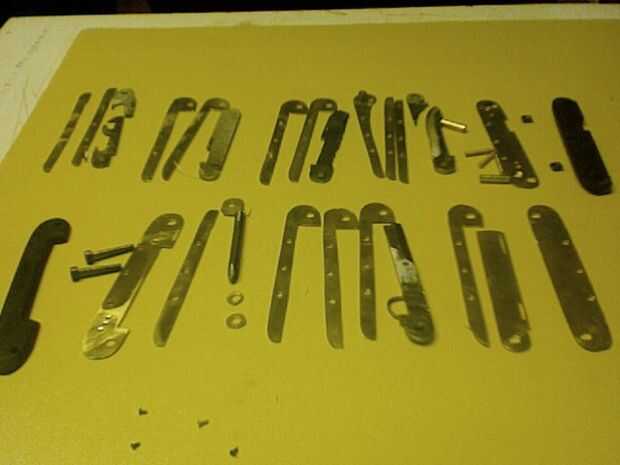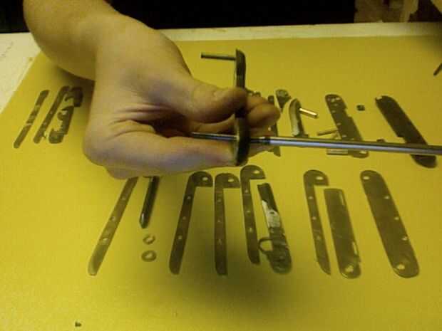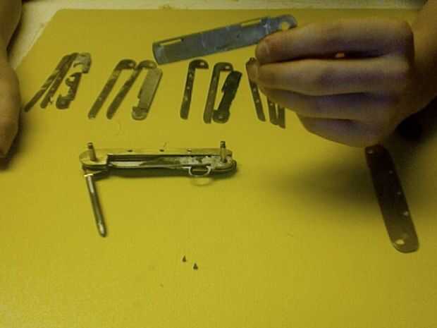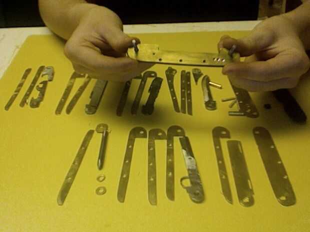 CAPA 8, si usando un 3/16 cuchillo paz A continuación, agregue paz L dos veces entonces paz G, si tu con un 1/8 hoja entonces quitar la paz A, éter cierto lugar paz F al lado opuesto de la navaja.