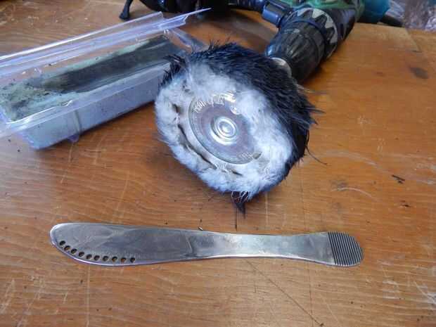 He usado ruedas de pulir mi taladro con compuesto para pulir. El acero inoxidable se convirtió rápidamente y brillante.
