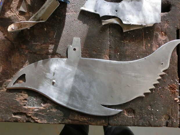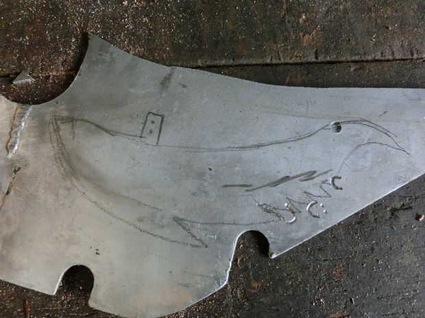 Corte el diseño con una sierra, manteniendo unos 2mm de las líneas. Archivo de los lados hasta las líneas que harán más suave de los bordes curvos. Perfore un agujero o dos en el conector del mango.