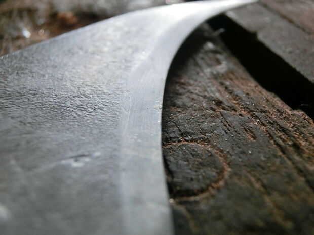 Después de presentar todas las aristas, afilar los lados deseados con un archivo de hasta casi un punto. Use un archivo punta aguja fina arena sacapuntas de papel o un cuchillo para hacer el resto. Acabar con algún papel de esmeril fino para dar la hoja un aspecto profesional, liso (si quieres un borde dentado, después afilado ir simplemente ligeramente sobre el borde con una lima de media que con doblar un poco la hoja para dar un eficaz efecto dentado)