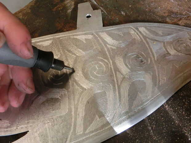 Diseño de un modelo que te gusta, boceto en metal con un lápiz, primero grabamos pulg (realmente no hay demasiado a ella)