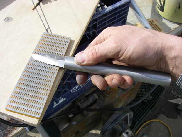 Afilar la hoja en una piedra de diamante. ¿Desea más información sobre cuchillo afilado?