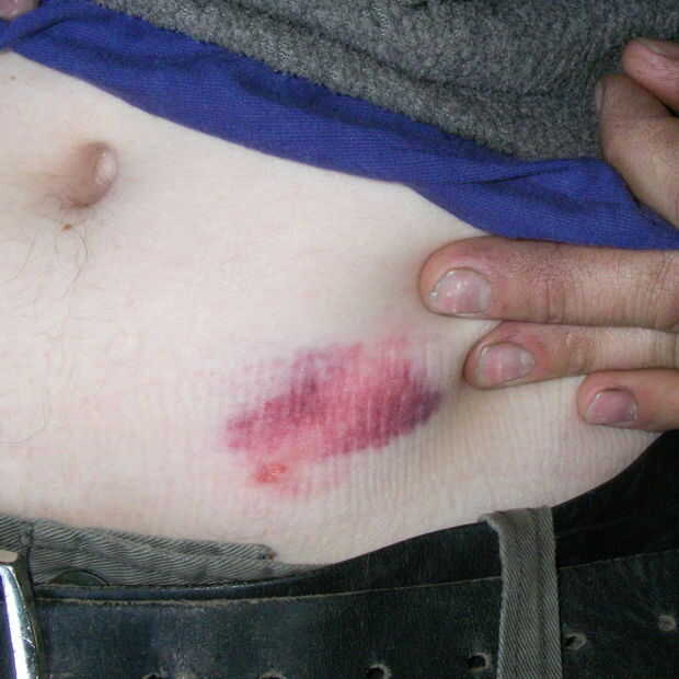La pieza que me hizo este daño a través de dos chalecos, una camiseta, la parte superior de mi pantalón y cinturón.