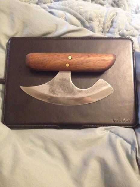 Hemos estado usando un cuchillo ulu en nuestra casa durante muchos años. El cuchillo y tabla para cortar en este tutorial se basa en uno que compramos en Alaska. Es una manera rápida y fácil para cortar frutas y verduras como la curvatura de las roca