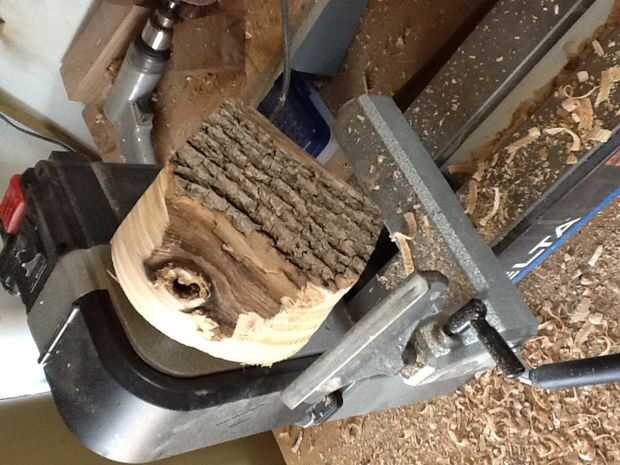 una vez que se plana y la corteza quitan y buena madera para trabajar, formar el hueco para las mordazas agarrar en.