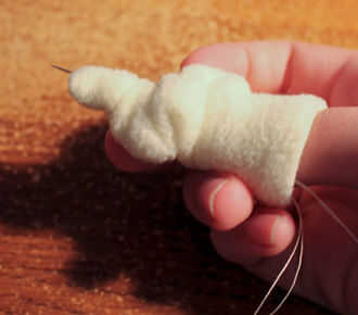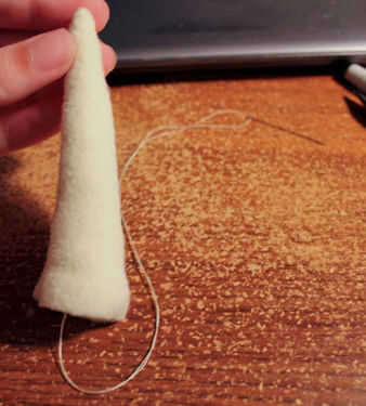 Luego que desea pegar la aguja hacia el cuerno y asoman por la parte superior para que ahora la cadena se estar saltando de la parte superior de la bocina. Esto puede tomar un par de intentos y mucha práctica para hacerlo bien, porque a menos que tengas un cuerno gigante, es difícil ver donde va la aguja. Procurará que se atranca o empujar hacia el lado en el accidente.