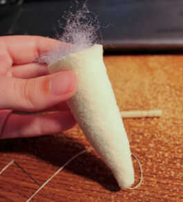 Luego tomar el hilo que sobresale de la parte superior de la bocina y espiral alrededor, tirando firmemente como vas. Básicamente, usted quiere tirar tan ajustadamente como sea posible sin romper el hilo. Yo suelo utilizar las dos manos para esto, pero tuve que tomar fotos esta vez alrededor.