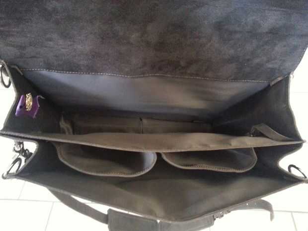 Una cosa que noté en uso antes de que llegaron mi suministros de modificación fue que la bolsa era un poco "floja". No tiene la pestaña solapa interna bajo el asa de transporte que se ve en algunos bolsos de Mensajero de cuero, por lo que cuando se de esa manera toda la bolsa parecía a bajar un poco. Parte de mi objetivo sería endurecer la cosa entera para arriba un poco.