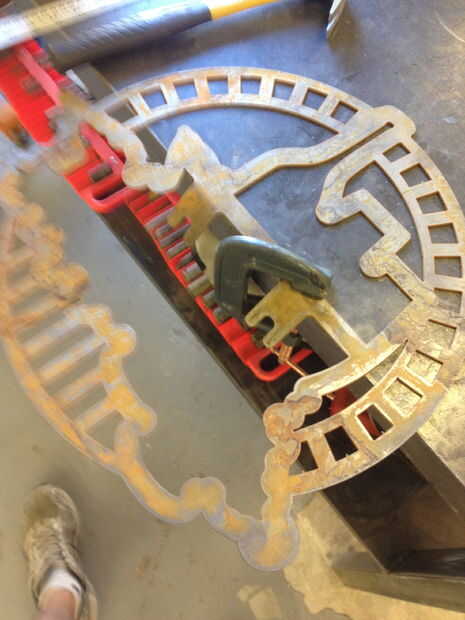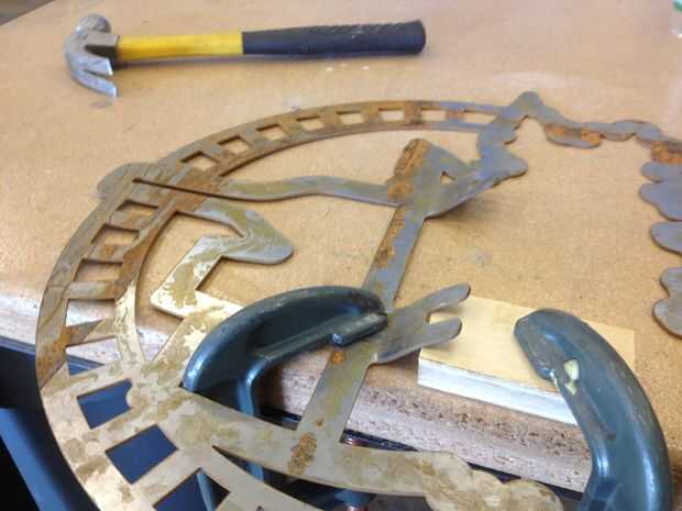y martillado las lengüetas hacia abajo paralelo a la parte delantera del acero