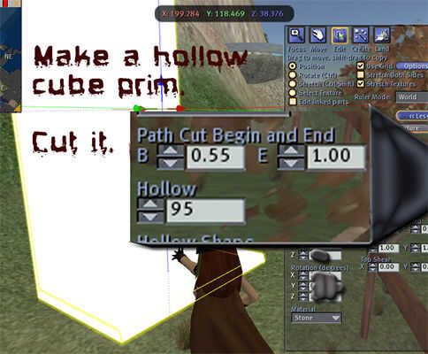 Rez un cubo, hacen hueco y corte como se muestra en la imagen. Girar a una llanura, contraste de color y estirarlo por lo que es lo suficientemente grande como para proporcionar un fondo a todo lo que quieras en su recorte.