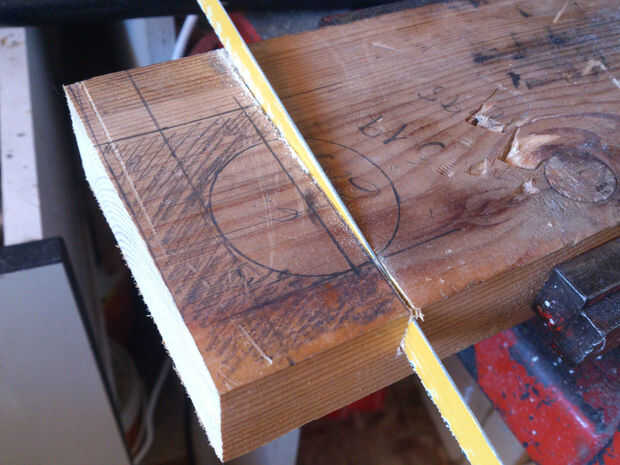 Cortar el bloque principal de la madera, como se puede ver, la mía es bastante irregular, para solucionar esto que he marcado las zonas que debían ser reducidos y lijar con una lija de ~ 100.