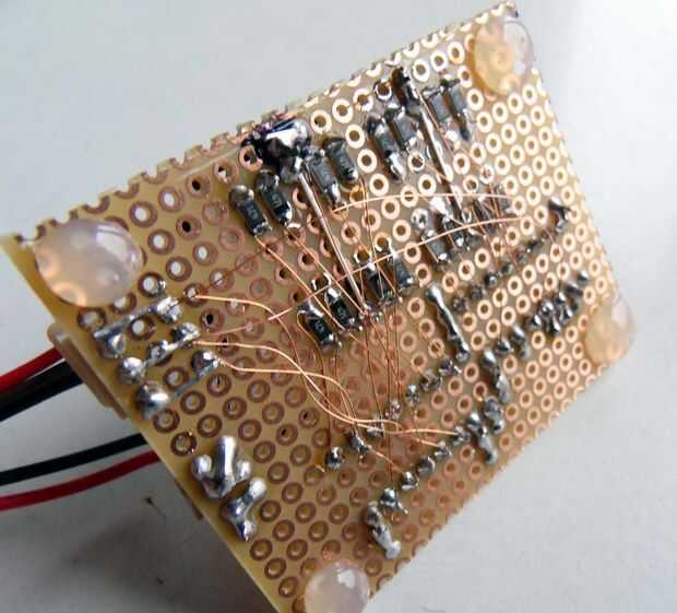 Este alambre de cobre está cubierto, pero la capa podría ser quemada abajo con un poco de estaño fundido. Es muy fácil de hacer conexiones con él. Sólo uno de los extremos de la lata, soldar al pin estirar al otro pin y quemar el aislamiento donde quieres que lo de la soldadura. Luego soldar al pin y cortar el resto. Un soldador de 30W como este de artesano es más que suficiente para el trabajo.