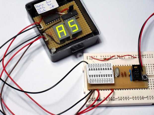 Se trata de una placa de desarrollo para microcontrolador Attiny84. Tha Attiny84 chip tiene 11 pines direccionables con el IDE de Arduino, 8k de memoria flash para el almacenamiento de programa y 512 bytes de RAM disponible para las variables de pila