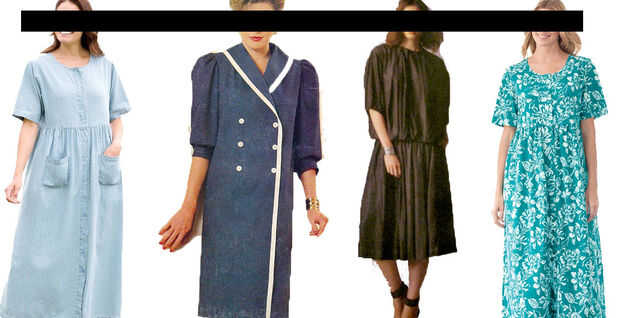 Tiendas de segunda mano tiendas de la caridad están inundados con yardas y yardas de durables, telas de calidad, atrapadas en el interior de estas gigantes, tamaños vestidos, caftanes o mumus. Tendrá que pagar unos centavos en el dólar por dril de algodón, paño de pato, tela de cepillado.