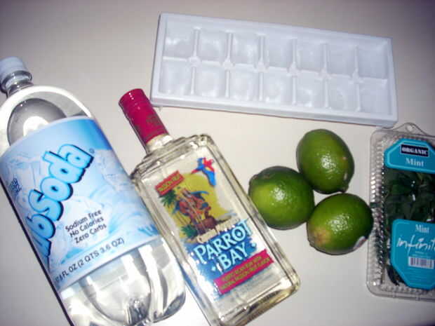 -Ron (esto depende de tu gusto. Mía quisiera más dulce, así que usar Ron de fruta de la pasión. Si te gusta el mojito clásico, fuerte, quedaría con un ron blanco llano).