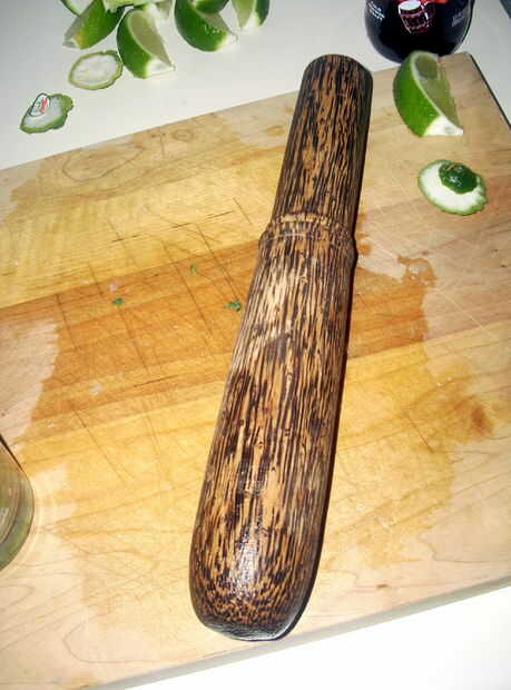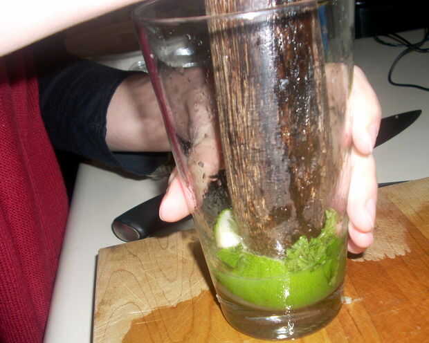 Yo utilice un mortero de madera, pero si no tienes, sólo encontrar algo con una palanca sustancial y darle la vuelta boca abajo. Machacar juntos durante unos 15 segundos o hasta que haya pasta de cal visible en el cristal.