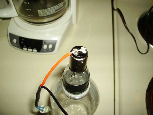 Descubrí que la manera más fácil de hacer esto tomando una botella de agua o botella de refresco y que se pega la bombilla en la parte superior y sujeta en su lugar con un trozo de cinta. Hace todo el proceso de soldadura en la parte inferior de los bulbos un heck de mucho más fácil!